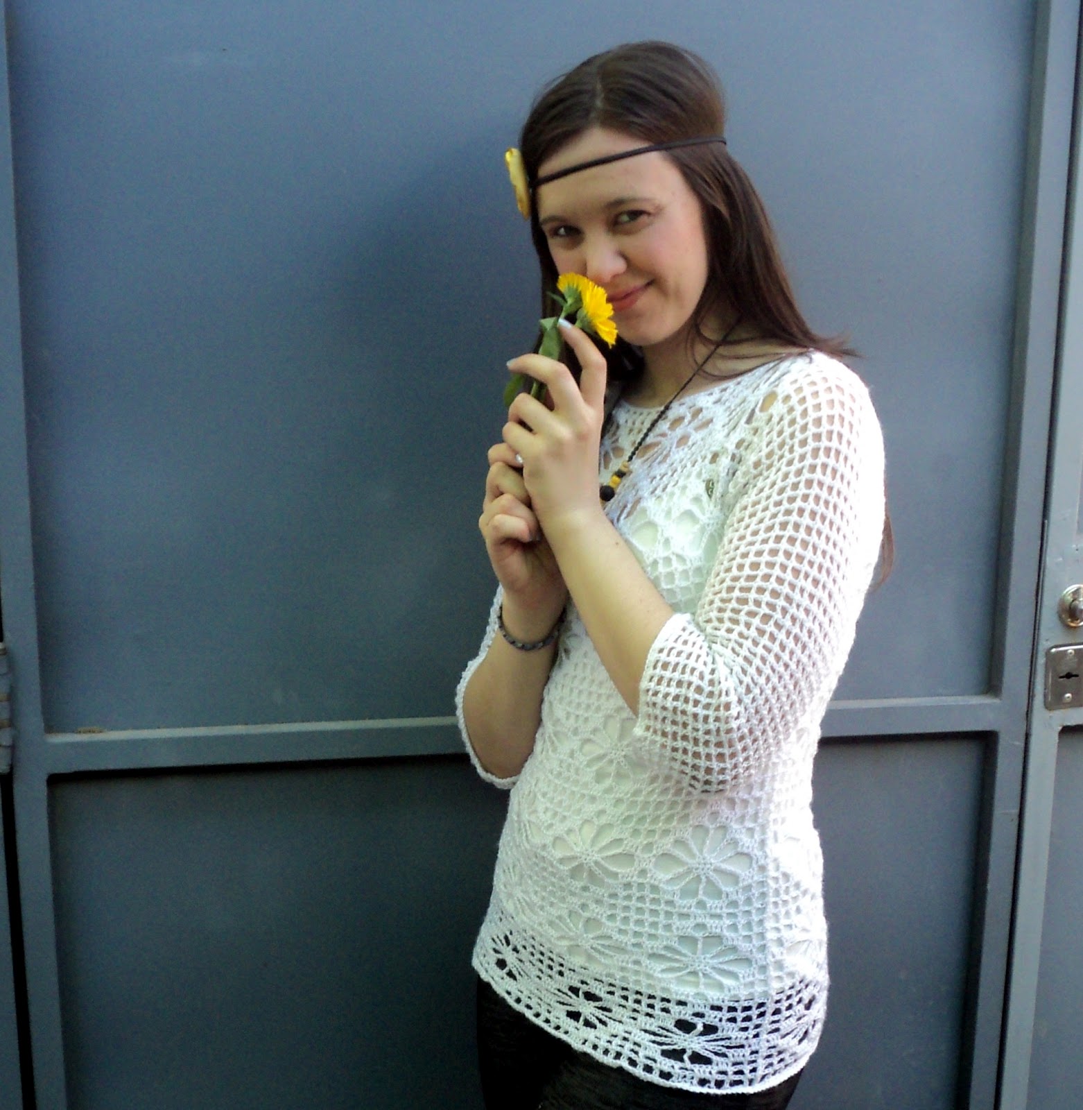Hola mis bellas amigas! Hoy les traigo un pullover tejido que lo hice yo. Es una imitación de encaje y al ser hecho en hilo, es fresco pero a la vez nos viene muy bien en los días frescos de esta primavera que no sabemos que ponernos. Las cosas abrigadas ya nos dan calor y para corto no estamos aún!